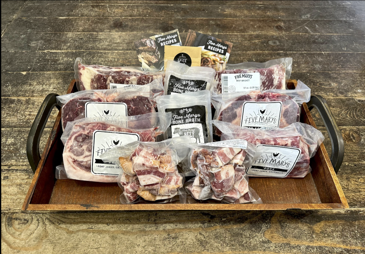 Regular price $160.00 Sale price $149.00The BEST cuts for cooking beef and pork in your slow cooker... and you will LOVE our new super nutrient dense bone broth! Each box comes with recipe cards for dinner inspiration and our classic Five Marys Spice Blend. Two sizes available!